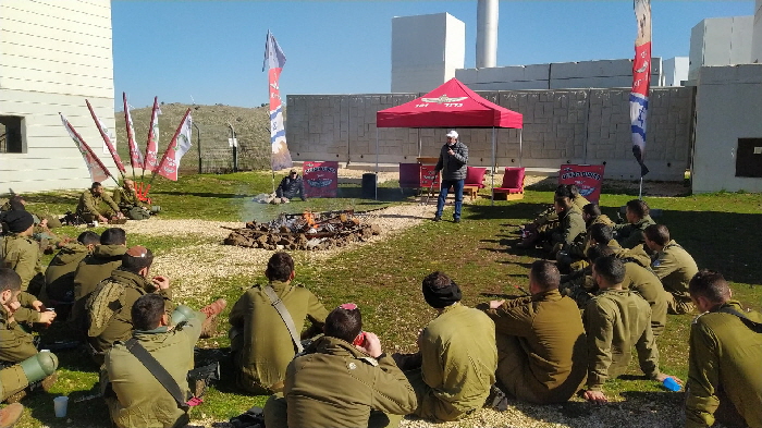 יהודה מרצה לחיילי ומפקדי גדוד 101 של הצנחנים בסיום אימון ברמת הגולן